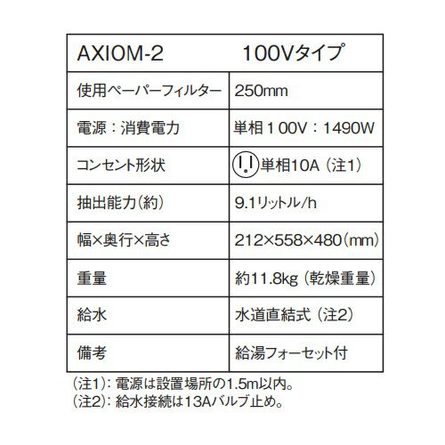 商品名:デカンタタイプ ドリップコーヒーブリューワー AXIOM2(アクシオム)-100V仕様