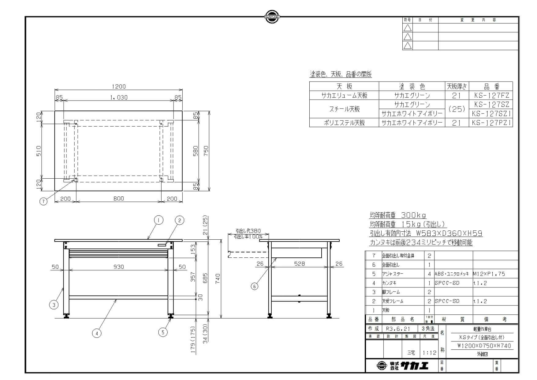 商品名:軽量作業台KSタイプ(全面引出し付) KS-127SZ