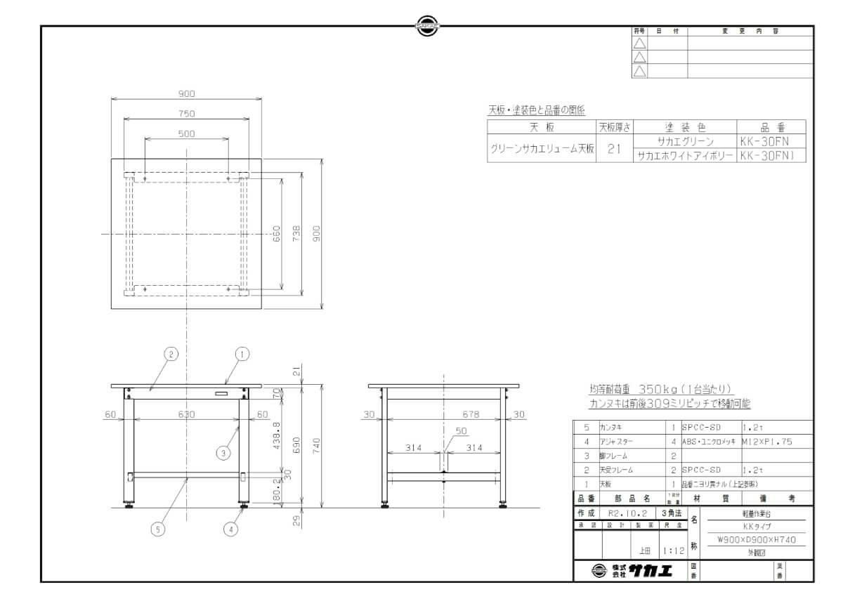 KK-30FN 【サカエ】【固定式】軽量作業台KKタイプ 幅900×奥行900×高さ740mm