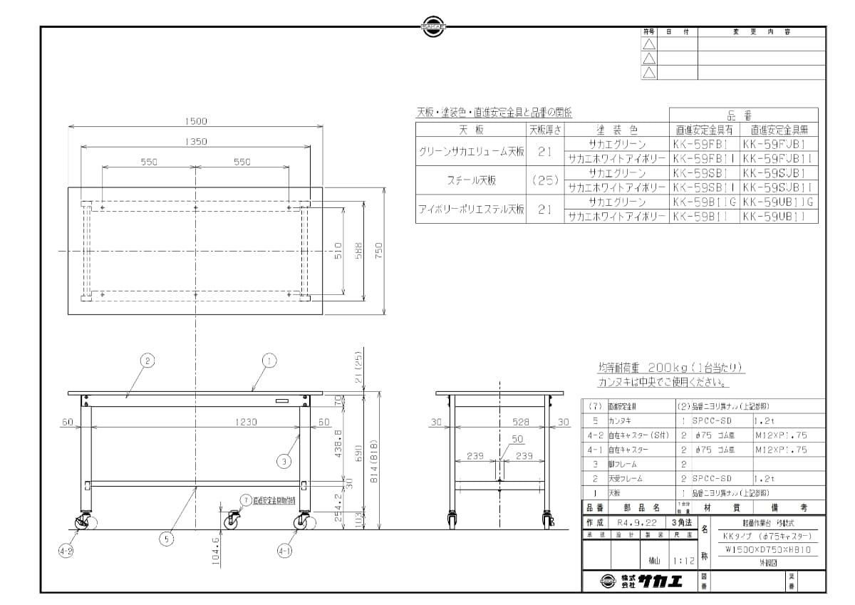 KK-59FB1 【サカエ】【移動式】軽量作業台KKタイプ(移動式) 幅1500×奥行750×高さ810mm