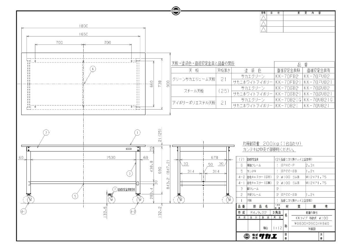 KK-70FB2 【サカエ】【移動式】軽量作業台KKタイプ(移動式) 幅1800×奥行900×高さ840mm