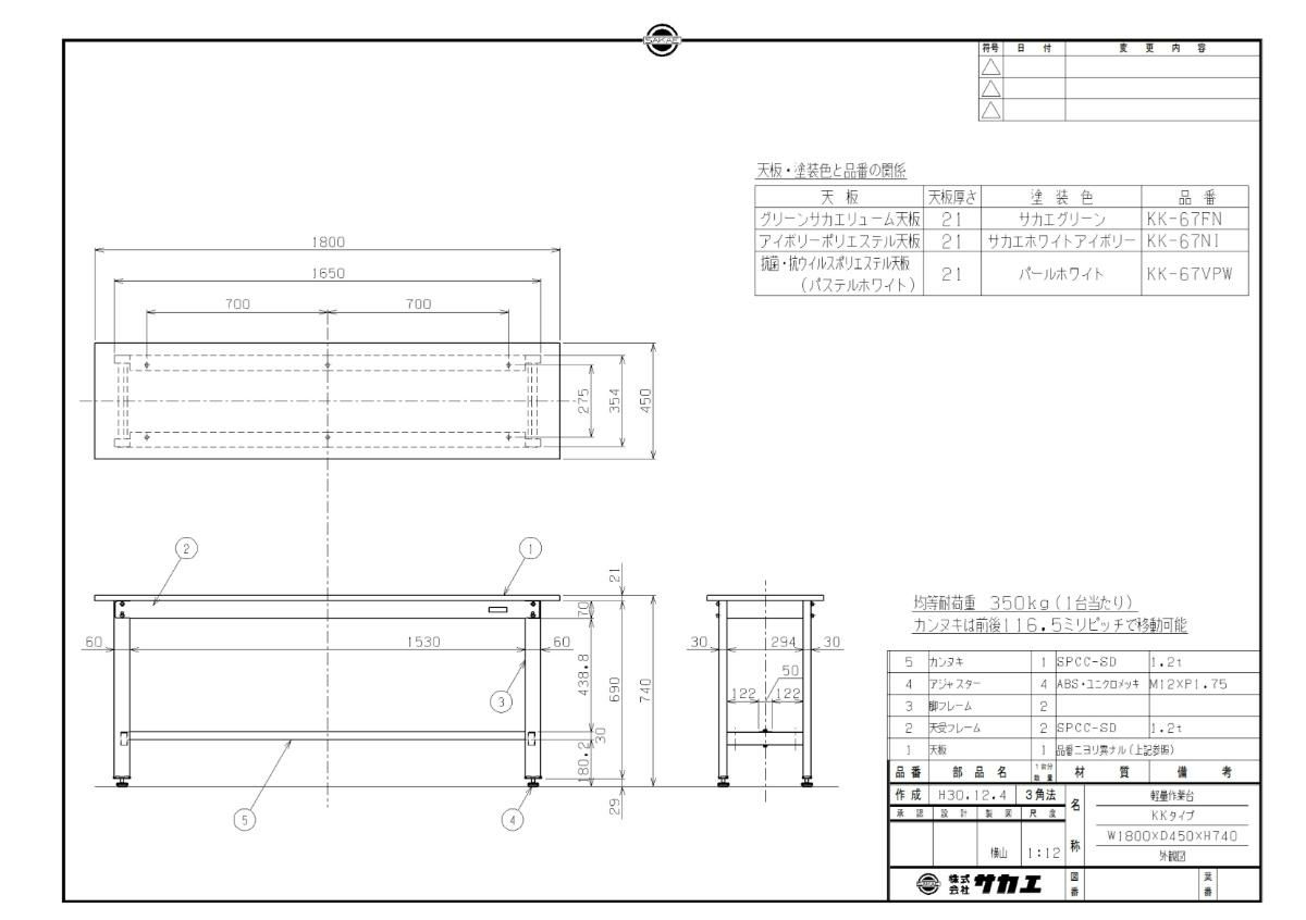外形寸法:幅1800×奥行450×高さ740(mm)