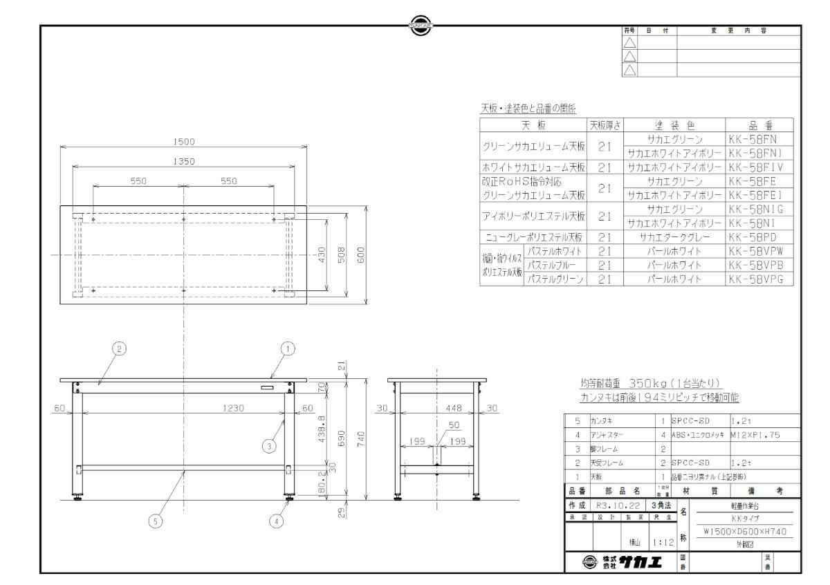 KK-58FNI 【サカエ】【固定式】軽量作業台KKタイプ 幅1500×奥行600×高さ740mm