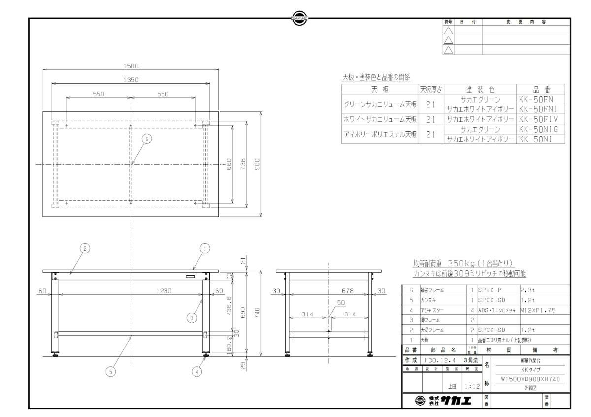 KK-50FNI 【サカエ】【固定式】軽量作業台KKタイプ 幅1500×奥行900×高さ740mm