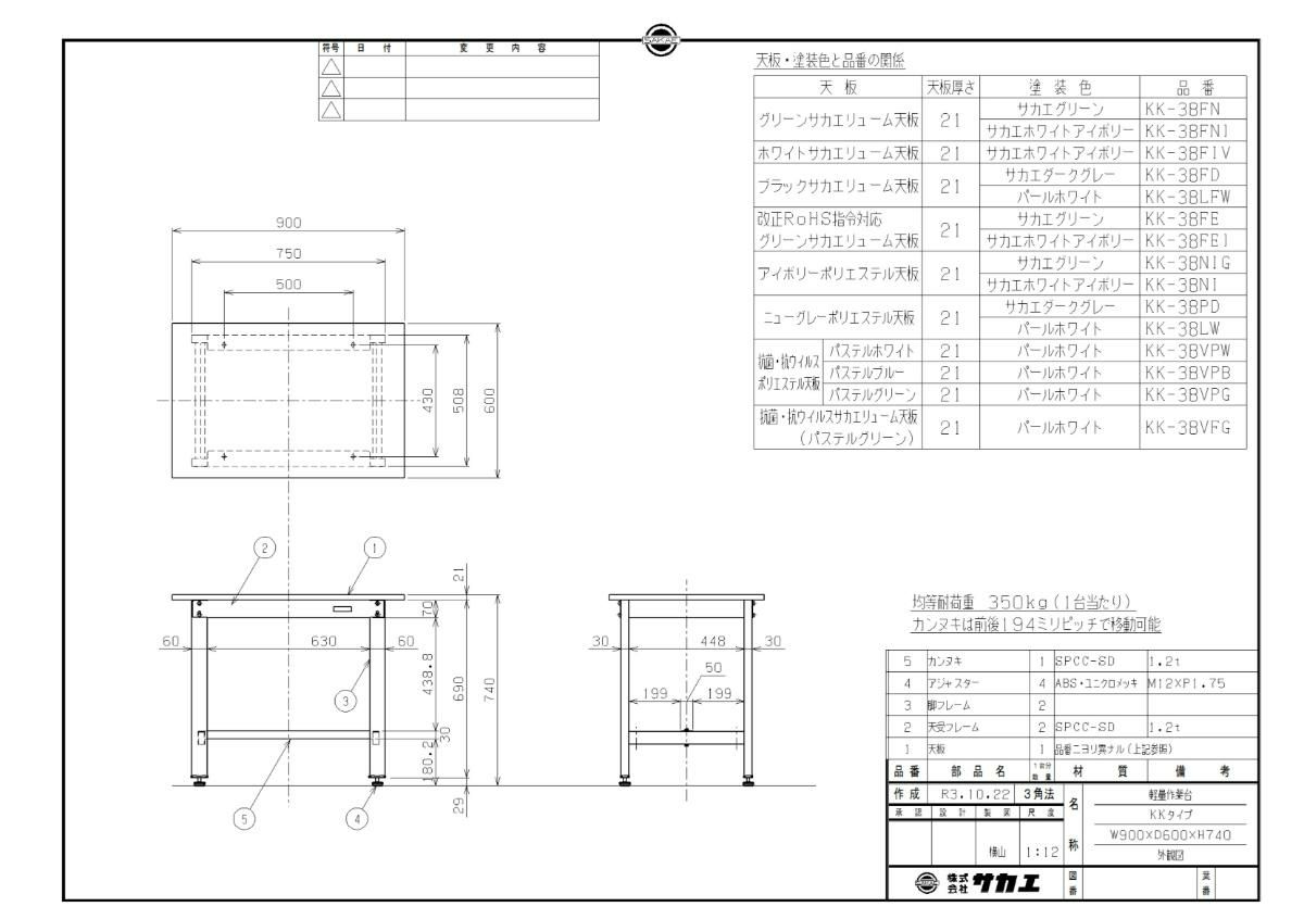 KK-38FIV 【サカエ】【固定式】軽量作業台KKタイプ 幅900×奥行600×高さ740mm