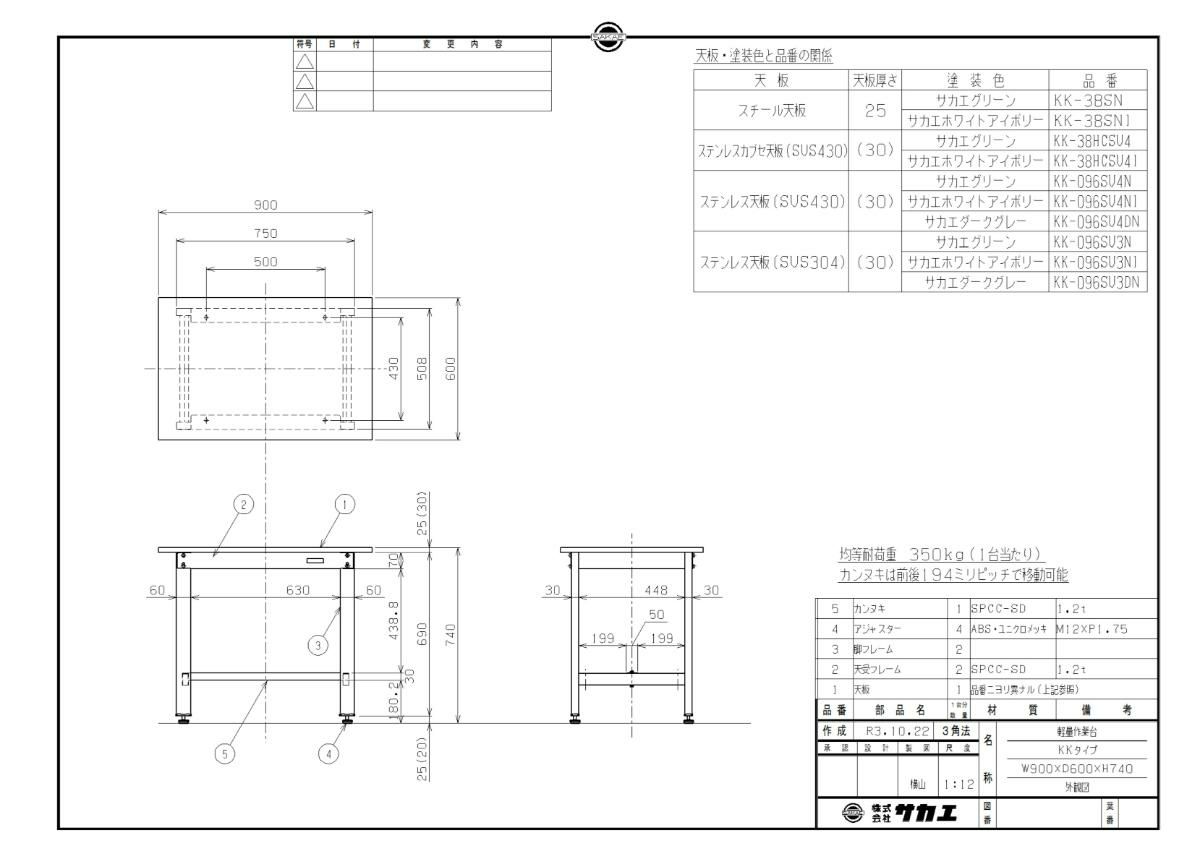 KK-38SNI 【サカエ】【固定式】軽量作業台KKタイプ 幅900×奥行600×高さ740mm