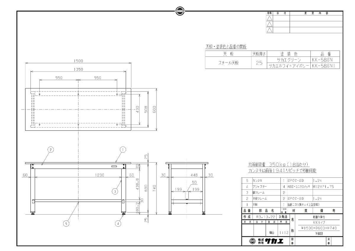 KK-58SNI 【サカエ】【固定式】軽量作業台KKタイプ 幅1500×奥行600×高さ740mm