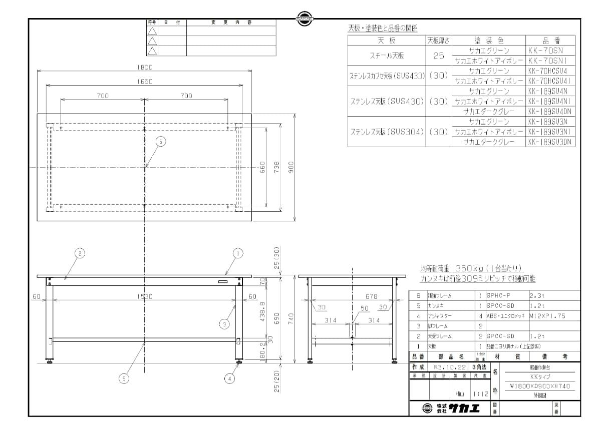 KK-70SNI 【サカエ】【固定式】軽量作業台KKタイプ 幅1800×奥行900×高さ740mm