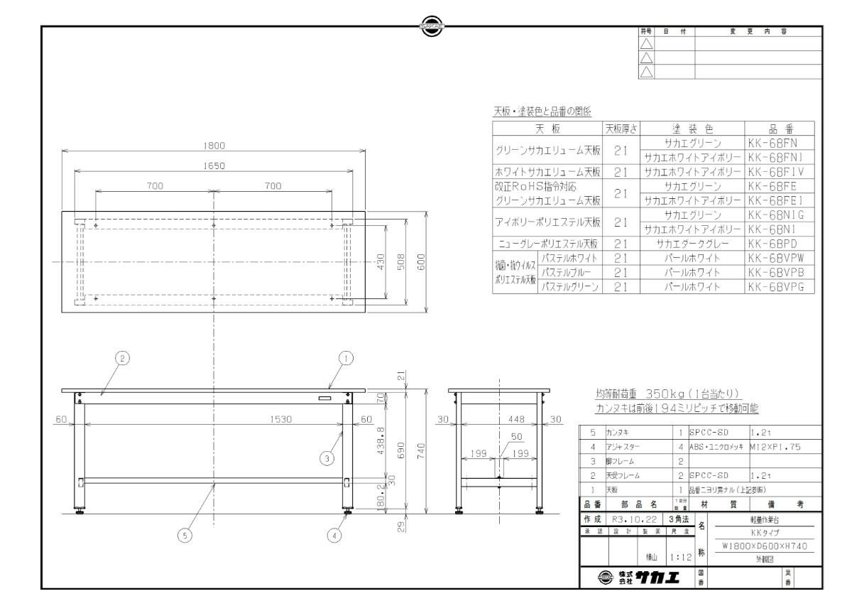 KK-68NIG 【サカエ】【固定式】軽量作業台KKタイプ 幅1800×奥行600×高さ740mm