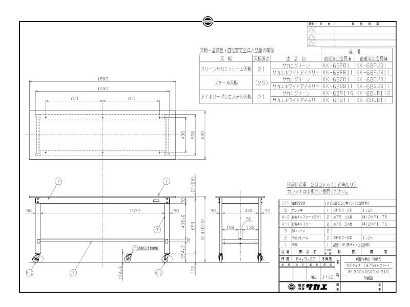 外形寸法:幅1800×奥行600×高さ810(mm)