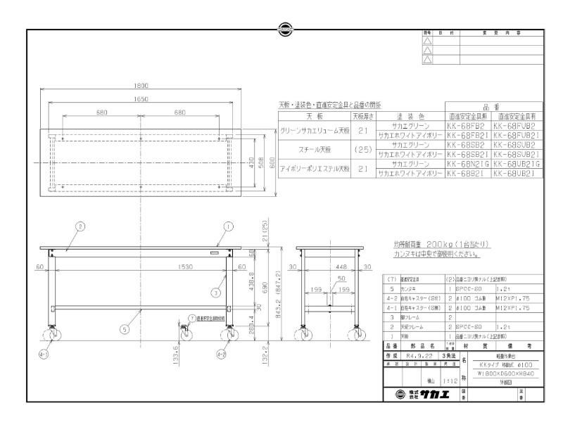 外形寸法:幅1800×奥行600×高さ840(mm)