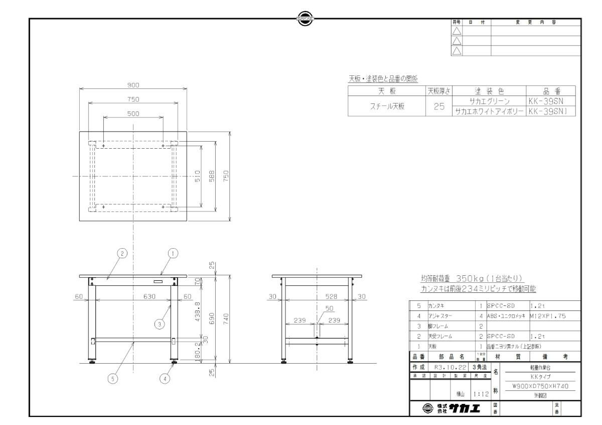 KK-39SN 【サカエ】【固定式】軽量作業台KKタイプ 幅900×奥行750×高さ740mm