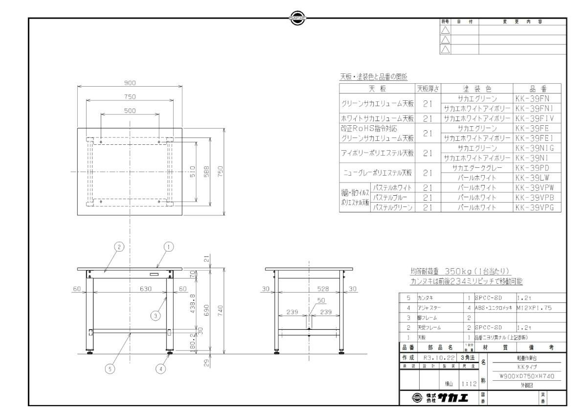 KK-39NI 【サカエ】【固定式】軽量作業台KKタイプ 幅900×奥行750×高さ740mm