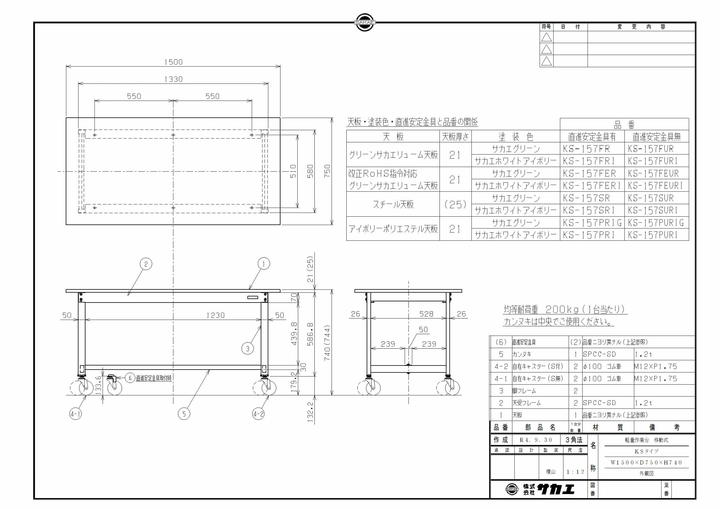 商品名:軽量作業台KSタイプ移動式(改正RoHS10物質対応) KS-157FER