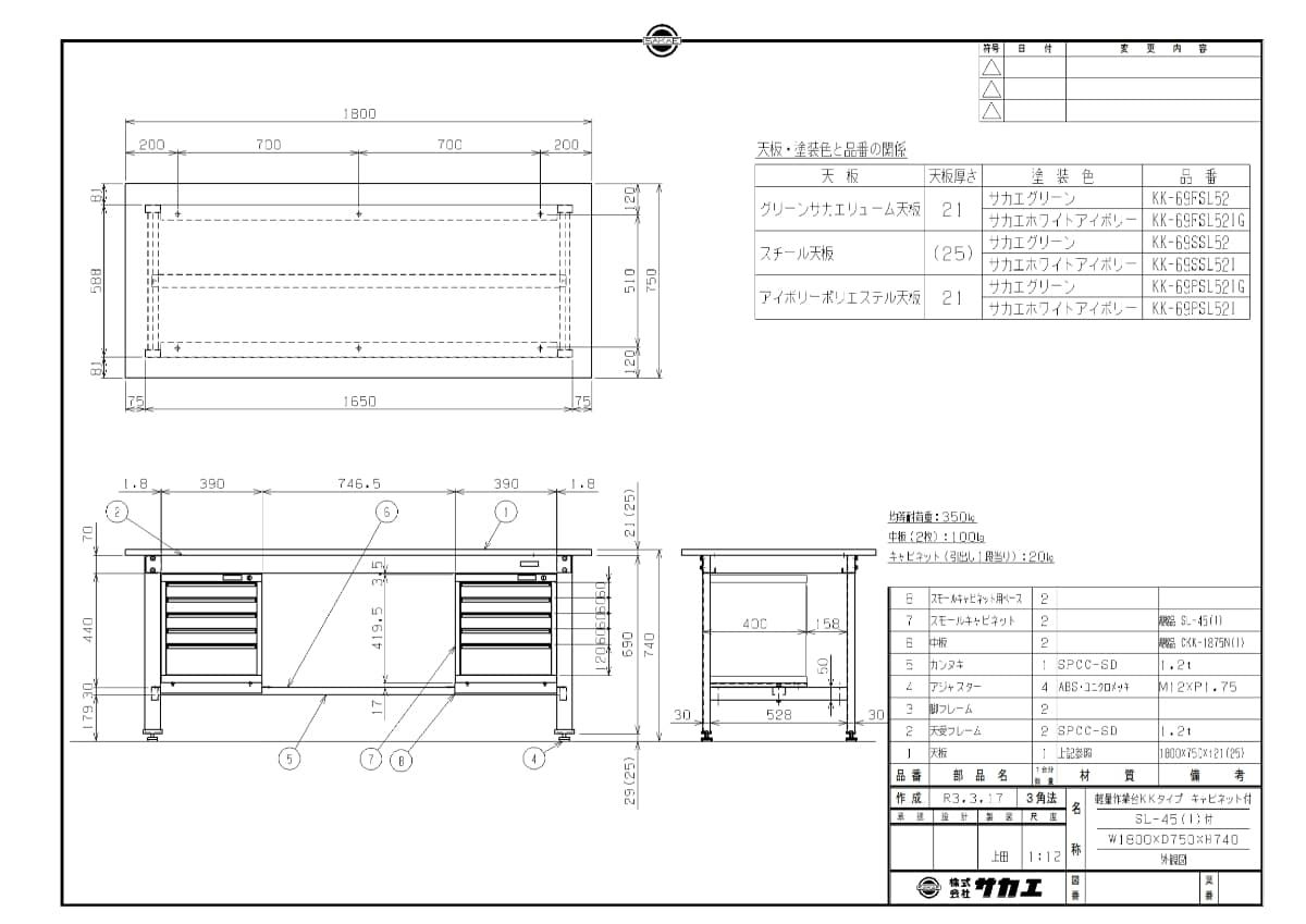 天板種類:軽量サカエリューム天板(グリーン)21t