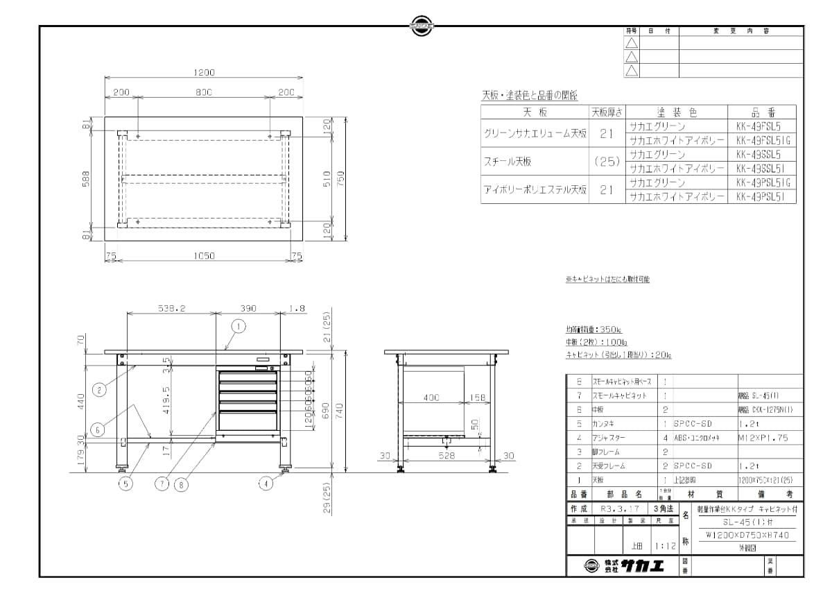 天板種類:軽量サカエリューム天板(グリーン)21t