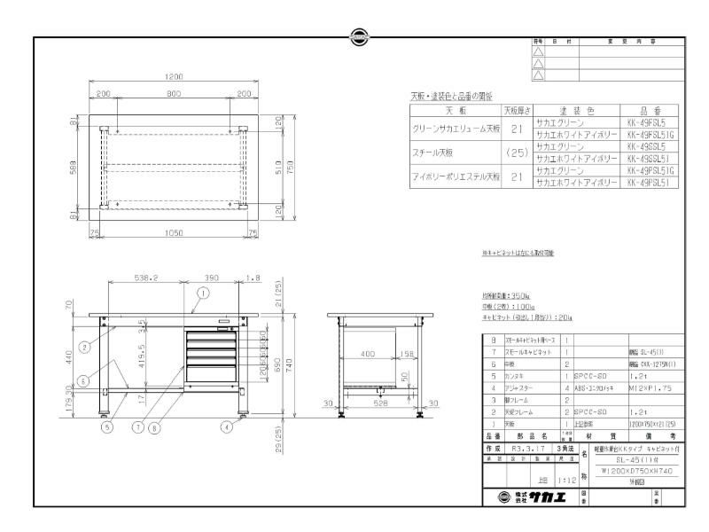KK-49PSL5IG 【サカエ】【固定式】軽量作業台KKタイプ(スモールキャビネット付) 幅1200×奥行750×高さ740mm