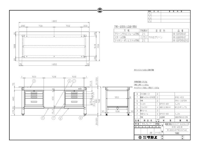 KK-69PSVE42IG 【サカエ】【固定式】軽量作業台KKタイプ(SVEキャビネット付) 幅1800×奥行750×高さ740mm