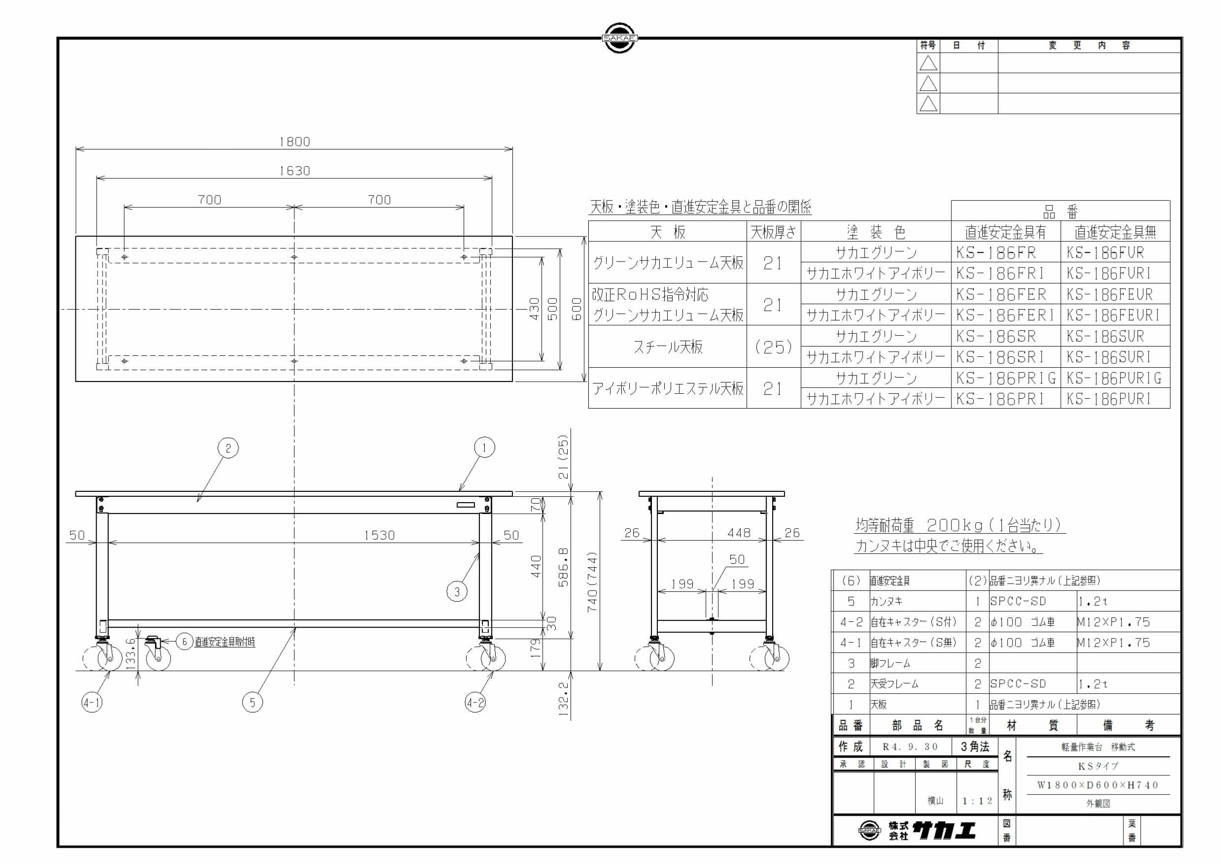 ●改正RoHS指令(RoHS2)における制限物質対応サカエリューム天板付作業台。キャスター付で簡単に移動ができます。