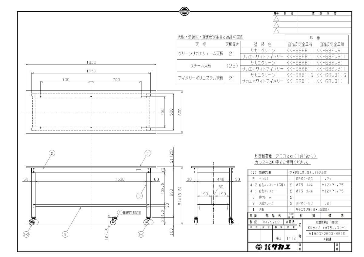 KK-68FUB1 【サカエ】【移動式】軽量作業台KKタイプ(移動式・直進安定金具無し) 幅1800×奥行600×高さ810mm