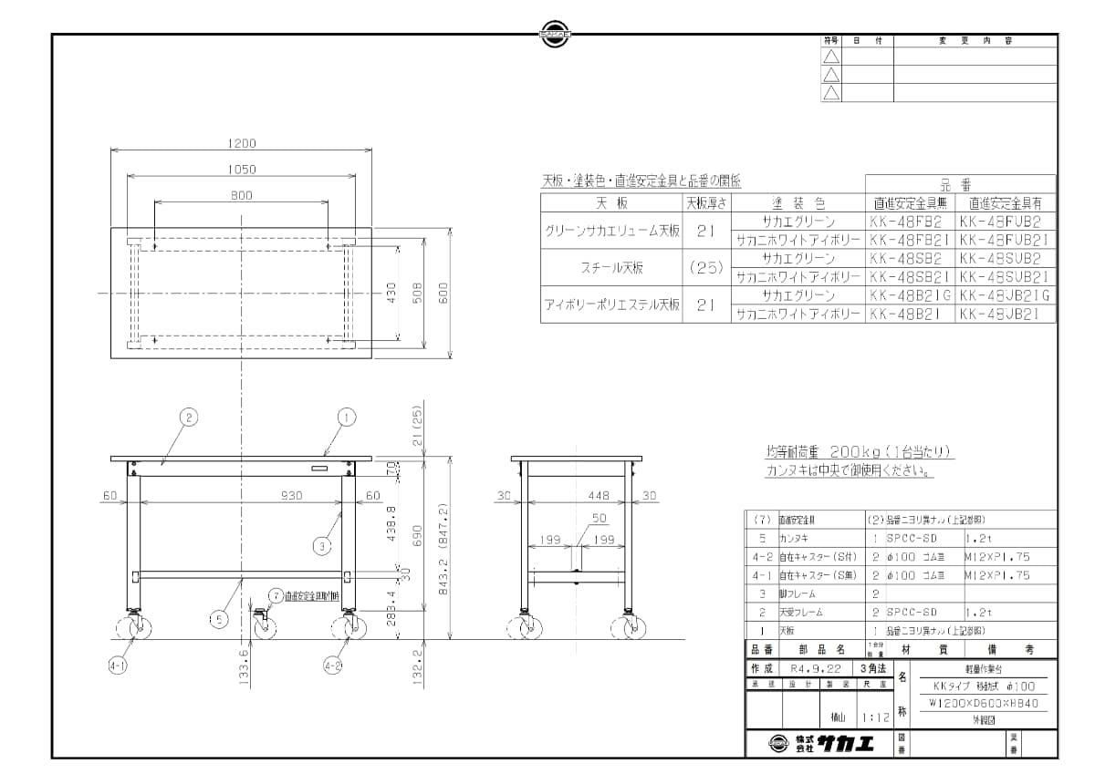 外形寸法:幅1200×奥行600×高さ840(mm)