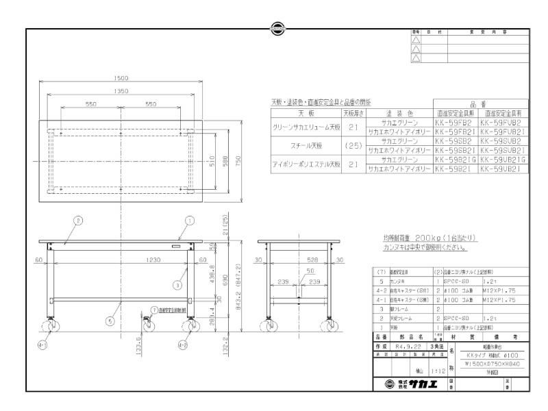 KK-59UB2I 【サカエ】【移動式】軽量作業台KKタイプ(移動式・直進安定金具無し) 幅1500×奥行750×高さ840mm
