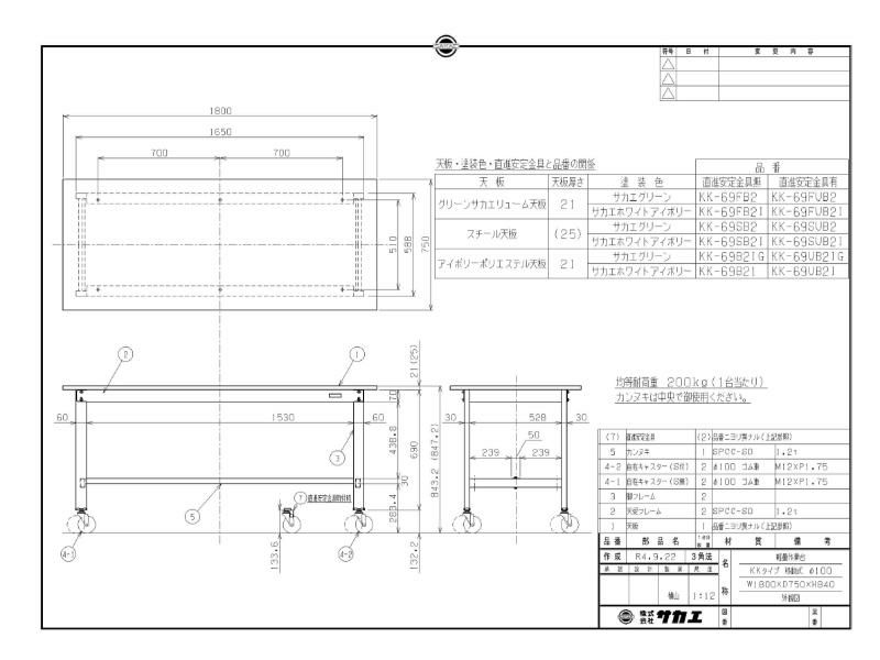 外形寸法:幅1800×奥行750×高さ840(mm)