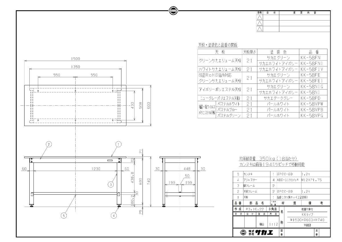 KK-58PD 【サカエ】【固定式】軽量作業台KKタイプ 幅1500×奥行600×高さ740mm