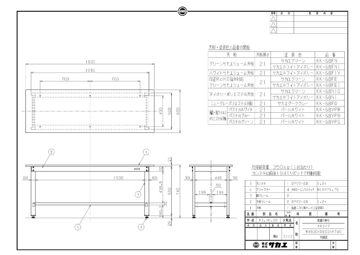 KK-68PD 【サカエ】【固定式】軽量作業台KKタイプ 幅1800×奥行600×高さ740mm