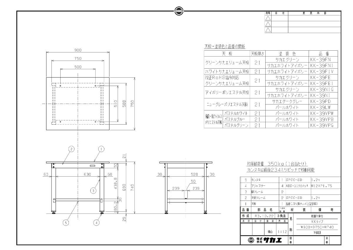 天板サイズ:900×750×21mm