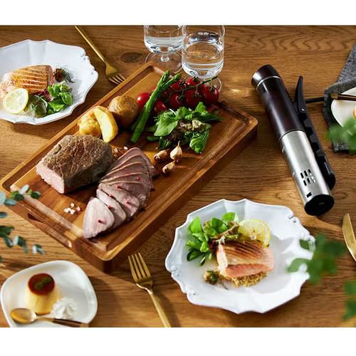 鍋の水温を一定に保つ調理器です。低温調理は一定の温度に水温を保つ必要があり、それを実現可能にするのが低温調理器です。