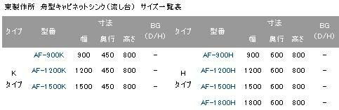 【東製作所】舟形キャビネットシンク AF-1500H 幅1500×奥行600×高さ800mm