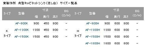 【東製作所】舟形キャビネットシンク AF-1800H 幅1800×奥行600×高さ800mm