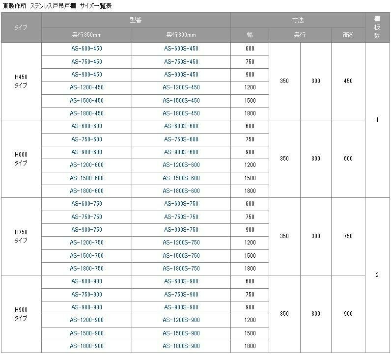 【東製作所】吊戸棚 ステンレス戸 AS-600-900 幅600×奥行350×高さ900mm