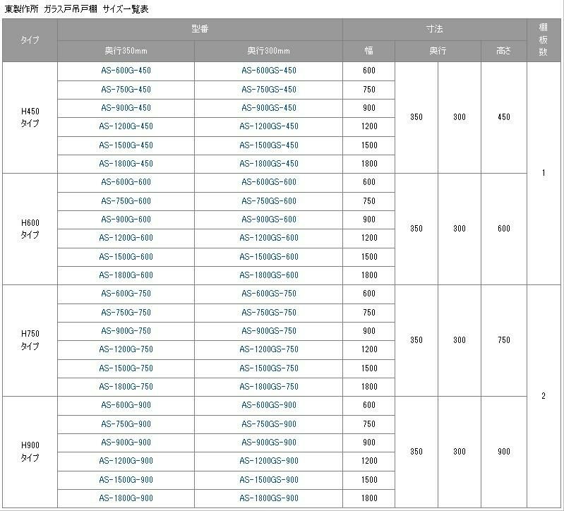 【東製作所】吊戸棚 ガラス戸 AS-600G-600 幅600×奥行350×高さ600mm