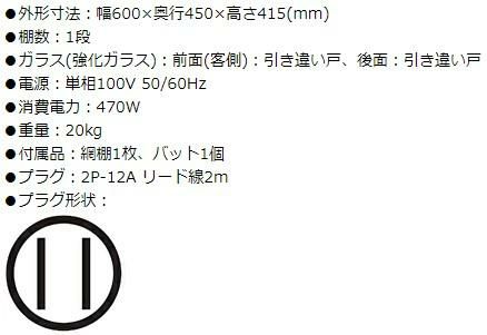 ニチワ ホットショーケース 前後ガラス引き違い戸 HSC-500 幅600×奥行450×高さ415mm