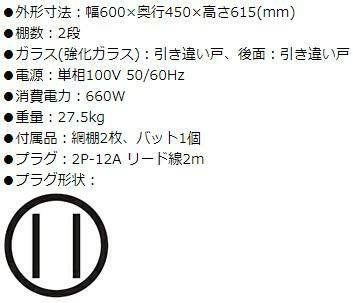 ニチワ ホットショーケース 前後引き違い戸 HSC-700 幅600×奥行450×高さ615mm