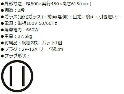 ニチワ ホットショーケース HSC-700F 背面引き違い戸 幅600×奥行450×高さ615mm