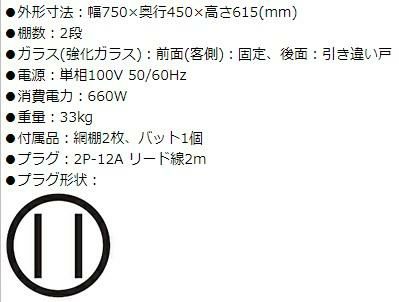 ニチワ ホットショーケース HSC-750 背面引き違い戸 幅750×奥行450×高さ615mm