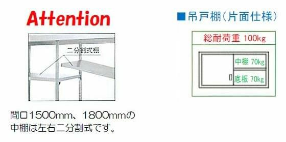 間口1500、1800の中棚は左右二分割式棚です。
