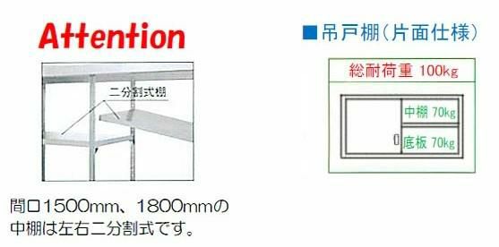 間口1500、1800の中棚は左右二分割式棚です。