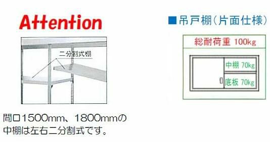 間口1500、1800の中棚は左右二分割式棚です。