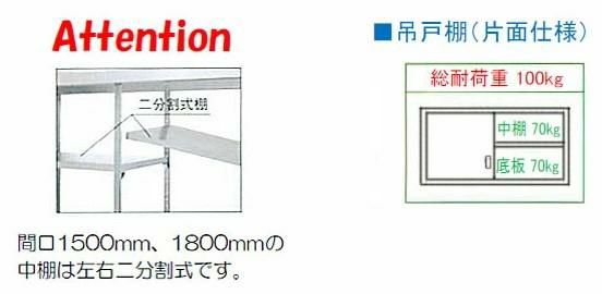 間口1500、1800の中棚は左右二分割式棚です。