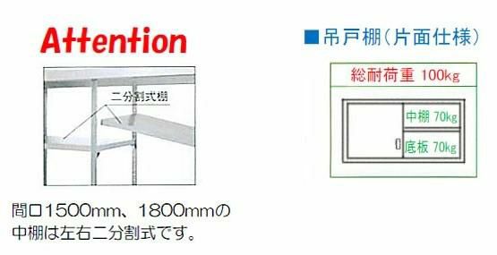 間口1500、1800の中棚は左右二分割式棚です。