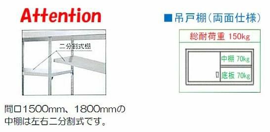 間口1500、1800の中棚は左右二分割式棚です。