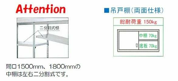 間口1500、1800の中棚は左右二分割式棚です。