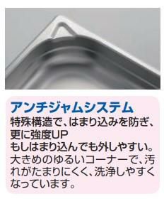 プロシェフ 18-8 ガストロノームパンシリーズ18-8ステンレスとは、JIS規格SUS304の18%クローム、8%ニッケルを含むニッケル系ステンレスです。錆びにくく、汚れにも強くタフな業務用厨房には最適です。他にない アンチジャムシステム!!特殊構造で、はまり込みを防ぎ、更に強度UP。もしはまり込んでも外し易い。※在庫が無くなり次第、順次 補強重なり防止付に替わります。クリーン大きめのゆるいコーナーで、汚れがたまりにくく、洗浄しやすくなっています。