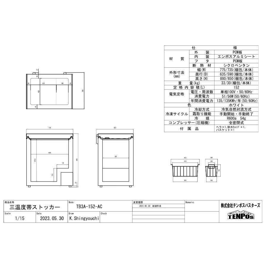 商品名:【テンポスオリジナル】TB三温度帯ストッカー TB3A-152-AC 152L