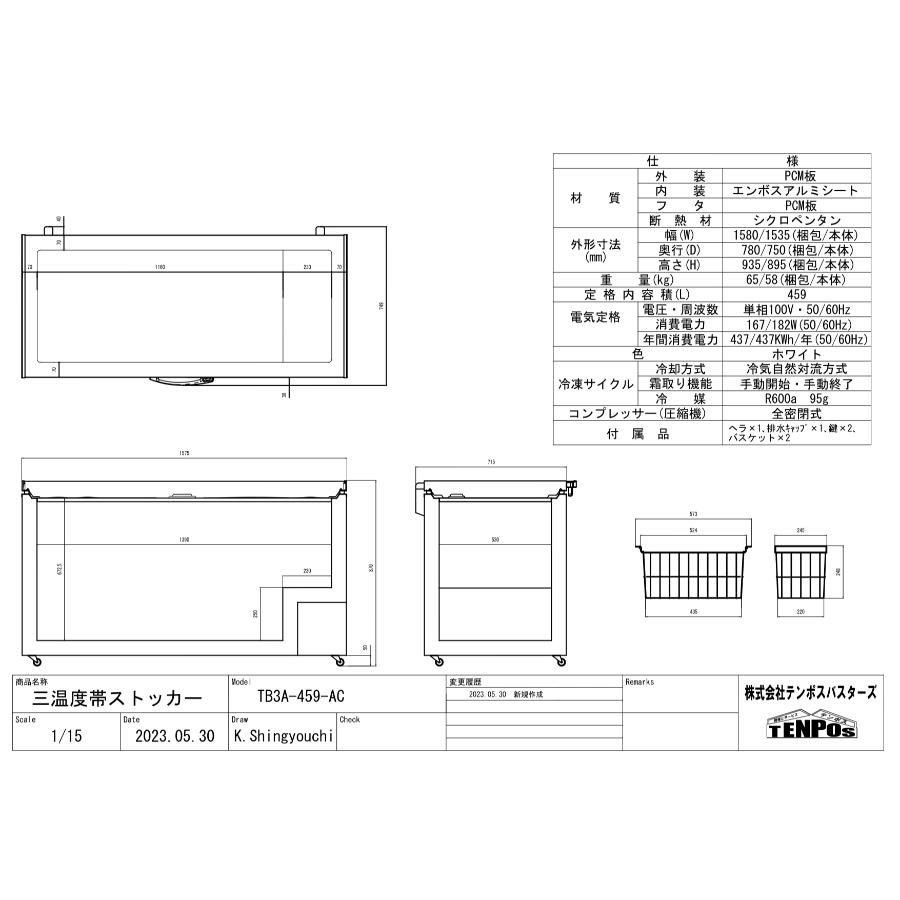 商品名:【テンポスオリジナル】TB三温度帯ストッカー TB3A-459-AC 459L