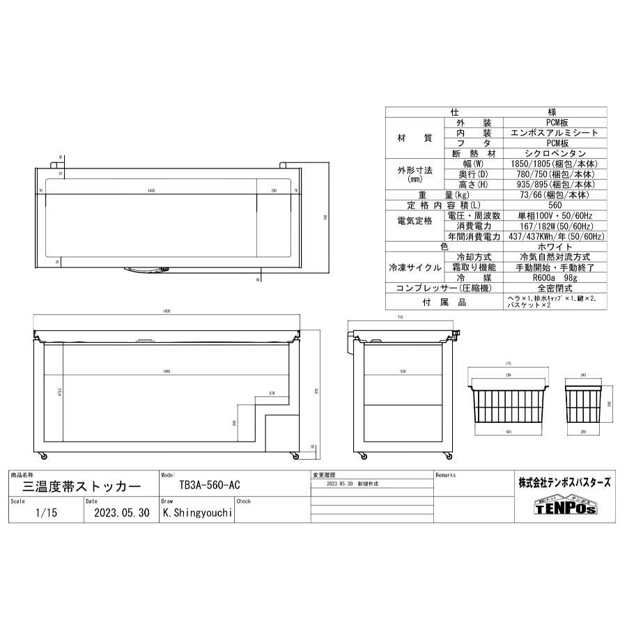 商品名:【テンポスオリジナル】TB三温度帯ストッカー TB3A-560-AC 560L
